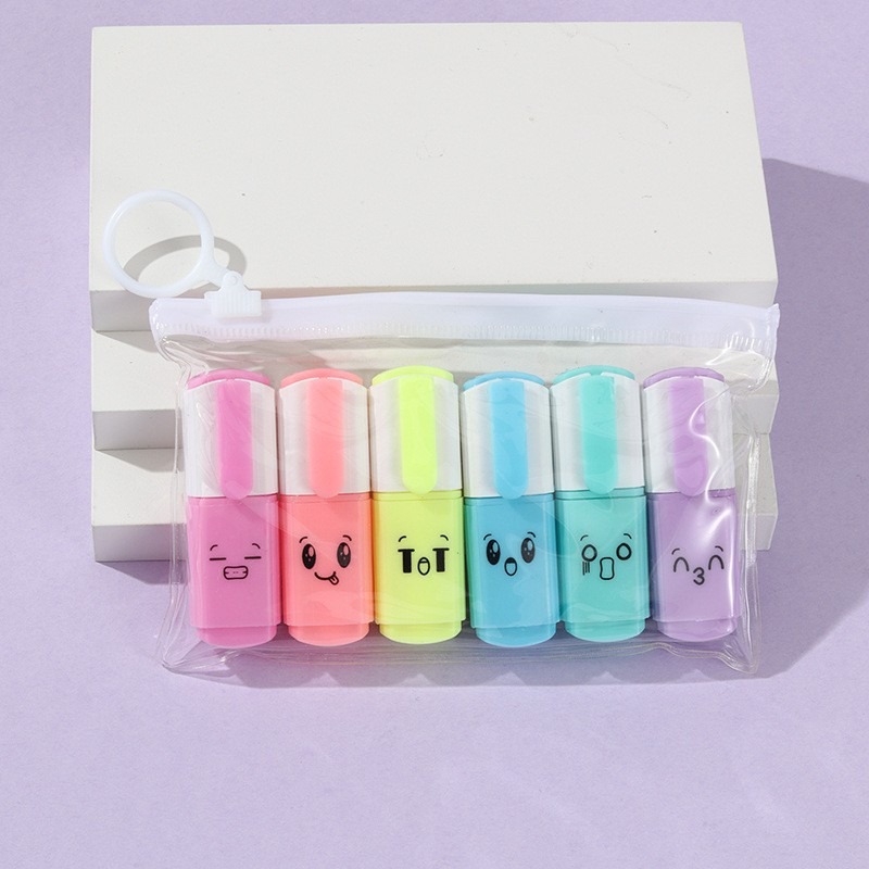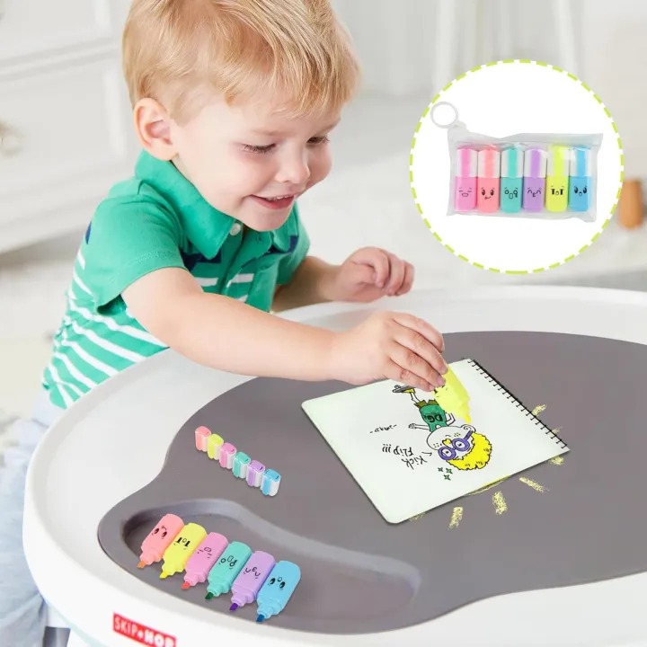 6 Pcs Premium Mini Text Markers Pastel Highlighters, Mixed Colors, No Bleed, Quick-Dry, Easy to Hold & Perfect for Journals, School, College, University & Office Use (6 Pcs)