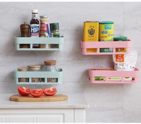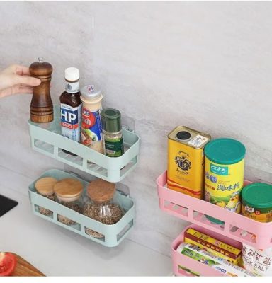 Adhesive Bathroom Storage Basket – Wall Mounted Shelf Organizer for Shampoo, Gel & Toilet Essentials