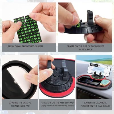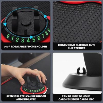 Multi-Functional Car Anti-Slip Dashboard Mat with Rotatable Phone Holder & Temporary Parking Number – Universal Non-Slip Silicone Car Dash Pad