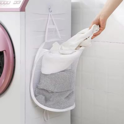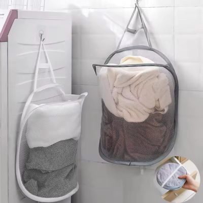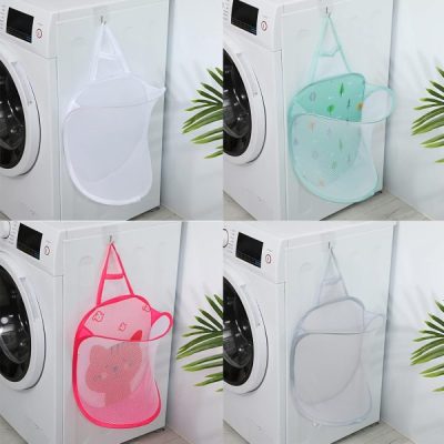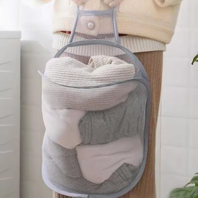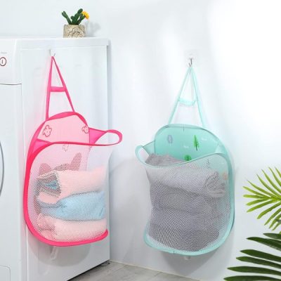 Space Saving Foldable Hanging Laundry Basket – Breathable Mesh Wall Storage Bag for Dirty Clothes